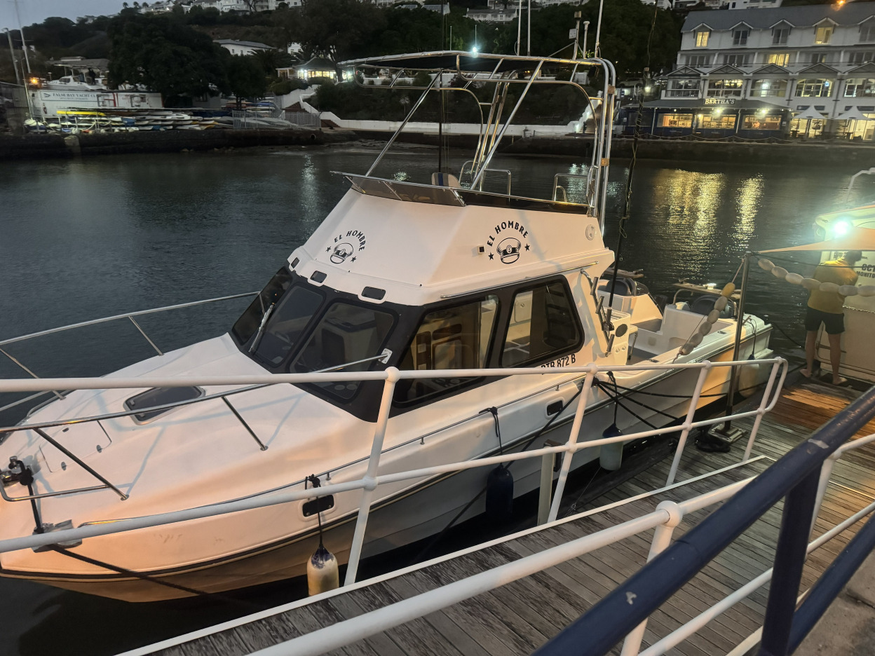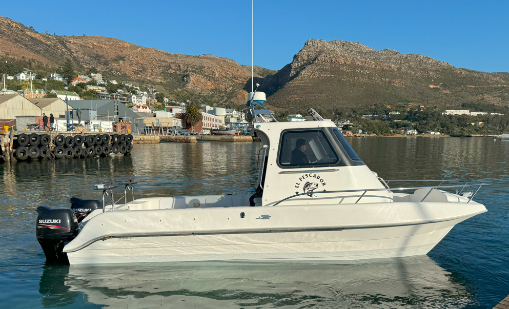 The boat that started it all. Powered by twin 150hp 4-stroke Suzuki motors this 28 foot walk-around is a well known and sought after fishing platform in RSA. Licensed for 8 pax, 40nm. Based in Simons Town, Cape Town