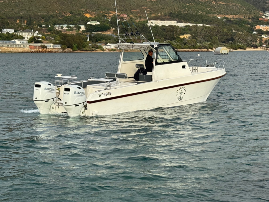 Powered by twin 140hp 4-stroke Suzuki motors this trailered 25 foot walk-around is a fantastic paltform for versatile fishing in any location both inshore and offshore. Licensed for 7 pax, 40nm. Based in Cape Town