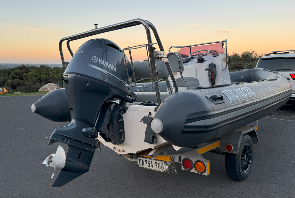 Powered by a 130hp 4-stroke Yamaha this 6.0m RIB is perfect for a fun day out on the water. Licensed for 6 Pax, 5nm. Based in Cape Town.